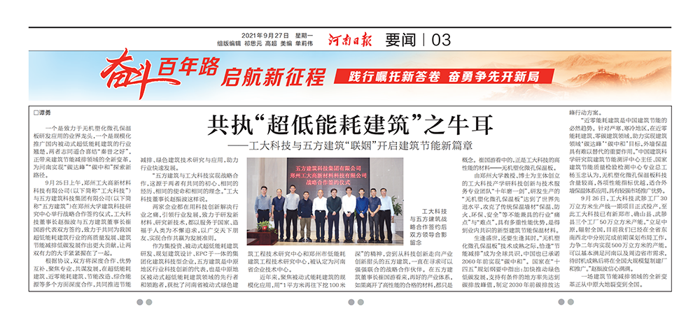 一個是致力于無機(jī)塑化微孔保溫板研發(fā)應(yīng)用的業(yè)界龍頭,一個是規(guī)?;茝V國內(nèi)被動式超低能耗建筑的行業(yè)翹楚,兩者志同道合喜結(jié)“秦晉之好”,正帶來建筑節(jié)能減排領(lǐng)域的全新變革,為河南實現(xiàn)“碳達(dá)峰”“碳中和”探索新路徑。