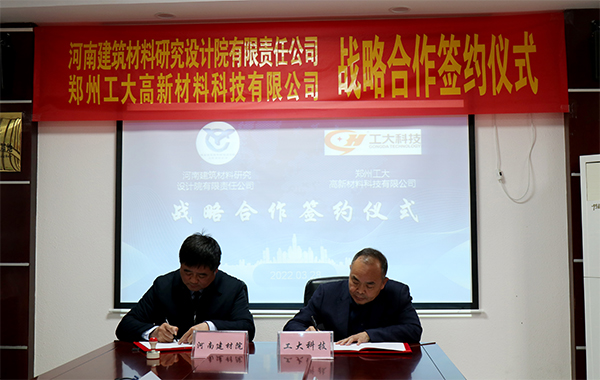 28日下午,河南建筑材料研究設(shè)計(jì)院有限責(zé)任公司(簡(jiǎn)稱“河南建材院”)和鄭州工大高新材料科技有限公司(簡(jiǎn)稱“鄭州工大科技”)戰(zhàn)略合作協(xié)議簽署儀式在河南建材院二樓會(huì)議室舉行。